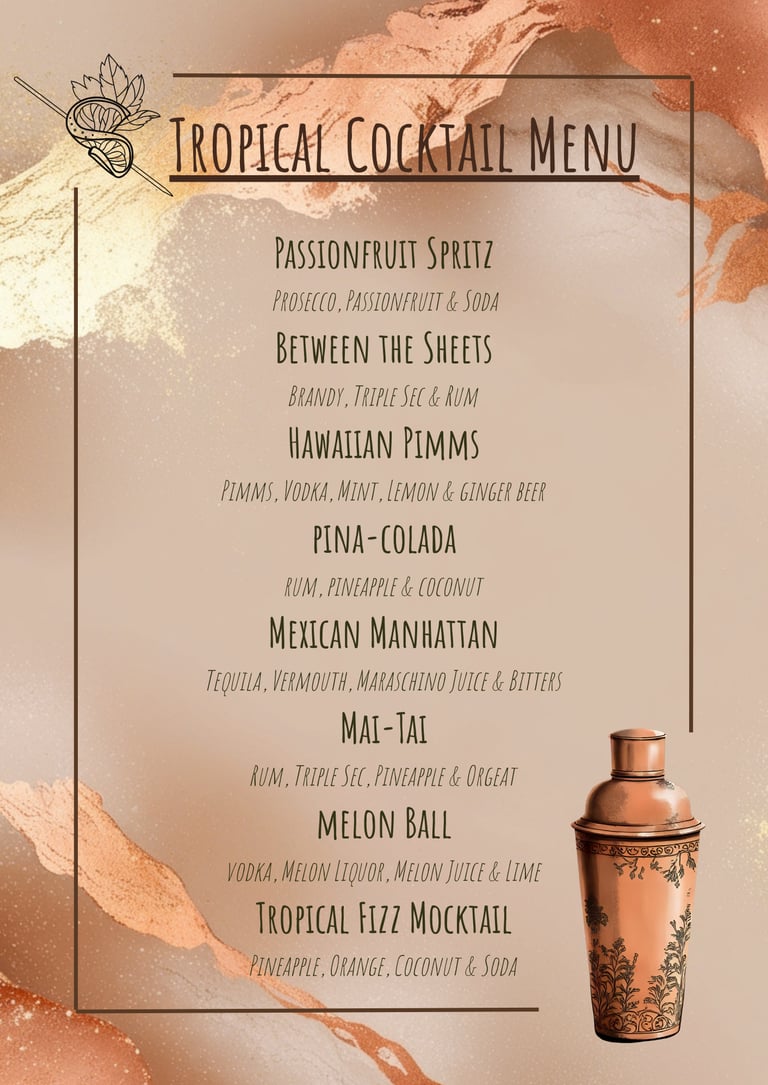 From Classic to Tropical, Seasonal or Spectacular we understand that selecting the perfect cocktail menu is essential.