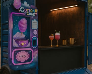 Enjoy fluffy, colorful candy floss that brings joy to every event, choose from 6 seasonal flavours, 2 toppings & dozens of designs, from hearts to flowers. Guests of all ages will be delighted.